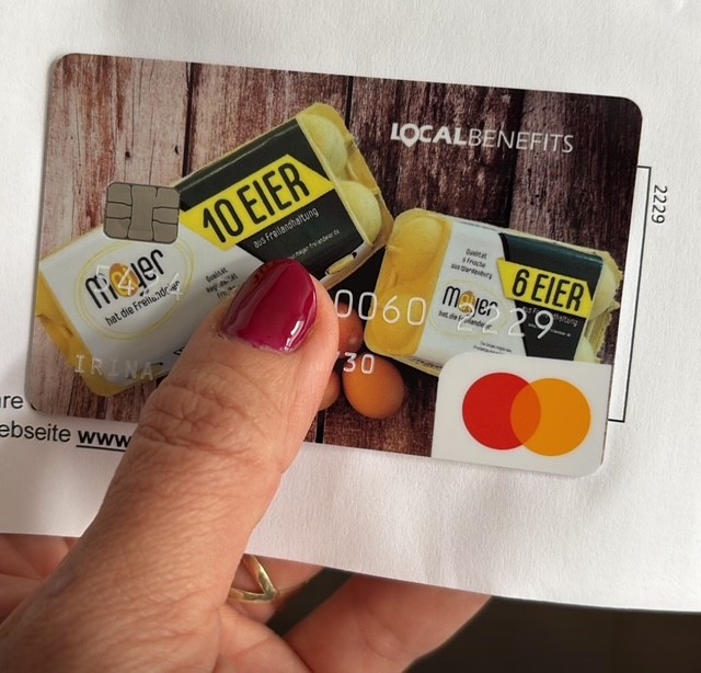 Wir haben für unsere Mitarbeiter Gutscheinkarten besorgt! Jeden Monat gibt es nun 50 EUR auf die Karte. Im regionalen Umland kann man diese zum einkaufen, tanken oder im Lebensmitteleinzelhandel nutzen! Und schön sieht sie auch noch aus! ; o))